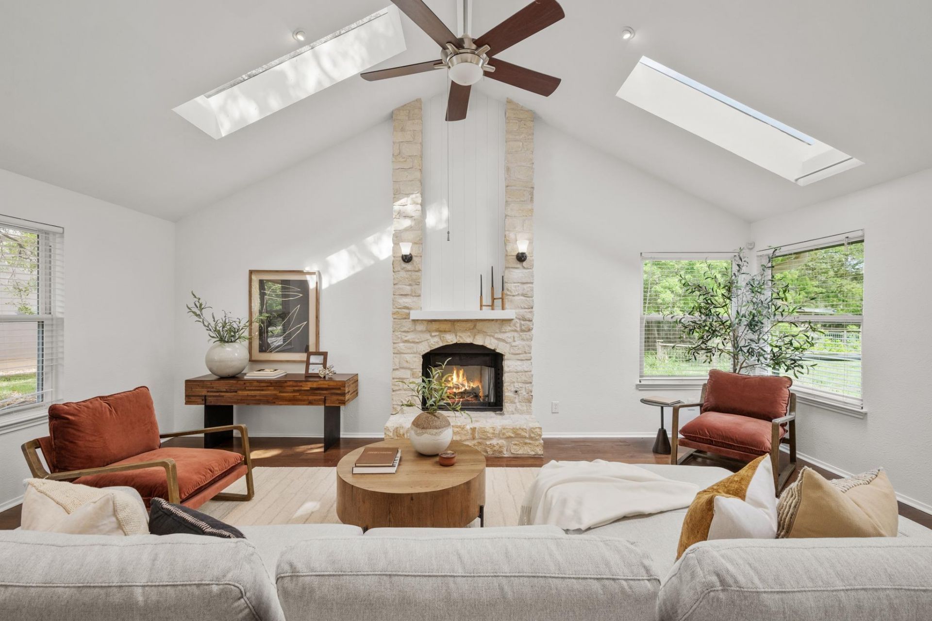 Showings begin 4/14/26. Set on more than a third of an acre in a quiet South Austin cul-de-sac, this thoughtfully refreshed home offers a rare combination of space, privacy, and everyday livability. Mature shade trees, beautiful rock beds, a covered front porch, and an expansive back deck create an inviting outdoor setting, while the massive backyard offers plenty of room to relax, entertain, or play.Inside, the home has been fully repainted in crisp white, giving each space a bright, fresh feel. The open dining and living area is anchored by vaulted ceilings, wood floors, a refreshed stone fireplace, and a wall of windows across the back of the home that brings in wonderful natural light. The kitchen features updated cabinetry, countertops, appliances, and newly replaced hardware for a clean, modern finish.All bathrooms have been updated with new tile flooring, sink and faucet replacements, and updated vanity lighting. The spacious primary suite features a raised ceiling, two closets, and a beautifully remodeled bath with new countertops, white sinks, updated cabinetry, and a large walk-in shower. Located just minutes from South Austin favorites, parks, and entertainment, this move-in-ready home pairs thoughtful updates with an exceptional setting and location.