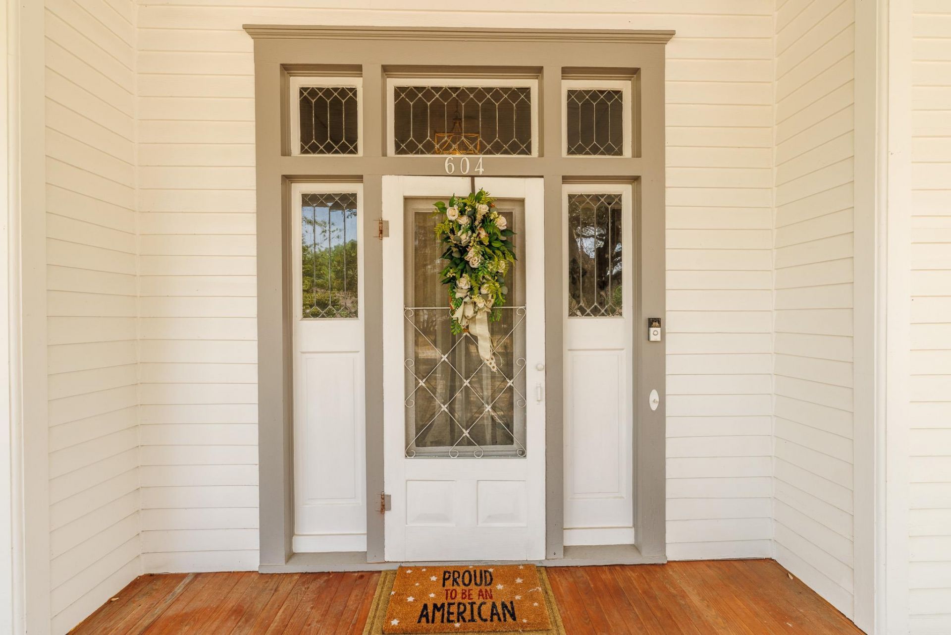 Step into timeless elegance with this beautifully preserved five bedroom Victorian home, where historic craftsmanship meets modern convenience. From the moment you enter the gracious foyer, you are surrounded by original woodwork, stained and leaded glass widows, and ornate fireplaces with their original tile and mantels - a true testament to the era's artistry. Elegant parquet and hardwood floors flow throughout, complemented by classic pocket doors that define each room with character and grace. The updated kitchen blends seamlessly with the home's vintage charm, featuring stainless steel appliances, abundant custom cabinetry, and modern functionality. The primary bath features heated marble floors while retaining vintage charm. Enjoy relaxed mornings and evenings on the covered front porch, ideal for morning coffee or relaxing after a busy day. Outdoors, the property offers a large, private backyard enclosed by a privacy fence with an electric gate, plus an office and workshop both with mini-split units. Mature trees provide ample shade. Recent updates include electrical and plumbing, storm windows, seamless gutters and energy efficient insulation, and a 50-amp RV plug with an additional driveway. A new roof was installed in 2017. Offering the perfect blend of Victorian beauty and everyday livability this home offers you the opportunity to own a cherished piece of Gonzales' rich history.